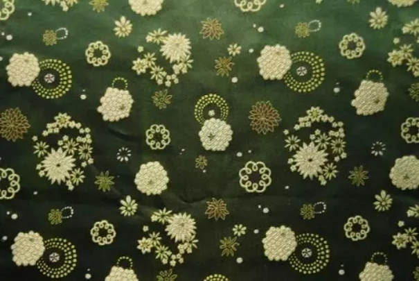 铺地锦又称“锦上添花”,其特点是在缎纹组织上用几何纹样或细小的花纹铺满地子,再在花纹上嵌织大朵花卉(有的加嵌金线),如宝相花等。色彩丰富、层次分明,显得格外富丽堂皇。