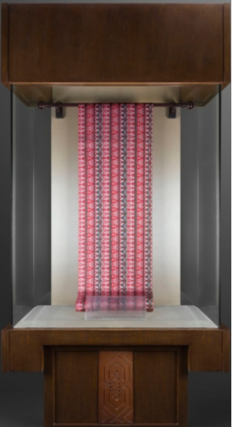 他和刘晨曦积极探索出了新的织锦技艺——小梭挖花。他织就的“红地八答晕锦”是宋代织锦代表性纹样,华丽精美,色彩艳丽,非常名贵。另一种“灯笼锦”原为元、明时期宫廷元宵节应灯锦纹样,常织成稻穗状,寓意五谷丰登。