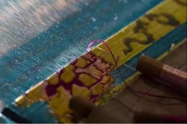 打结:这是织工的基本技能,也是学习手工织锦的第一道关。在一分钟内,用极细的丝线打出十二个结并剪掉线头,使其看上去像从来没断的才能及格。